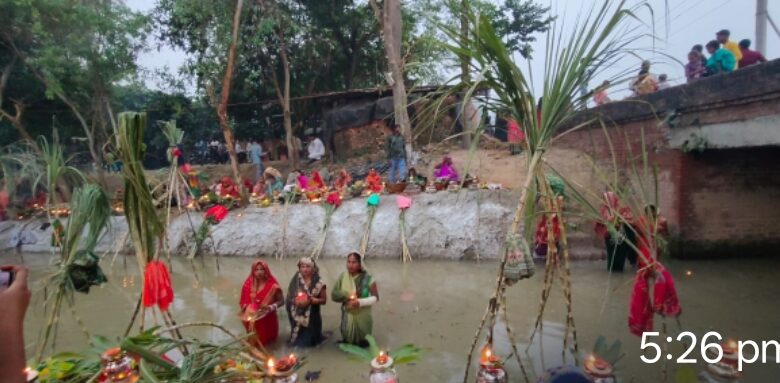 सोमवार की देर शाम बड़ी संख्या में छठ व्रती अपने पूरे परिवार एवं गाजे-बाजे के साथ छठ घाट पर पहुंचे। शाम को पूरे विधि-विधान से छठ व्रतियों ने डूबते सूर्य एवं छठ माता की आराधना की। बड़ी संख्या में स्थानीय जनप्रतिनिधि व अन्य लोग भी व्रतियों को पर्व की शुभकामनाएं देने छठ घाटों पर पहुंचे। सूर्य देव की उपासना का यह पर्व शुद्धता, स्वच्छता और पर्यावरण संरक्षण का संदेश देने वाला है। सूर्य देव के साथ-साथ छठी मैया की पूजा का विधान है। इस व्रत में सूर्य और षष्ठी माता दोनों की उपासना होती है। इसलिए इसे सूर्यषष्ठी भी कहा जाता है। दिन में छठी व्रतियों ने गेहूं, घी व शक्कर का ठेकुआ, चावल, घी और शक्कर का लड्डू प्रसाद के लिए बनाया। बांस के बने सूप डाला, दौरा, टोकरी में प्रसाद को रखा गया। इसके साथ ही प्रसाद के रूप में सेब, केला, अमरूद, नींबू सहित अन्य फल प्रसाद के रूप में रखे गए।