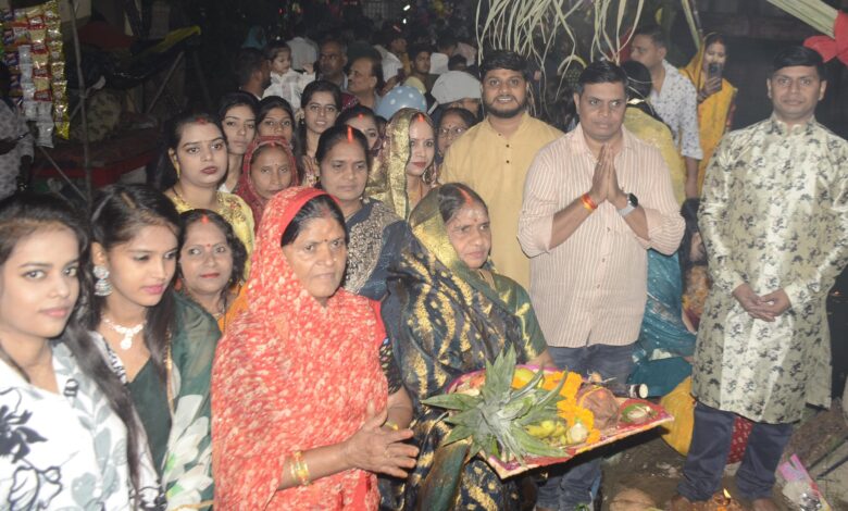 पारंपरिक विधि-विधान से डूबते सूर्य को अर्घ्य अर्पित करते हैं