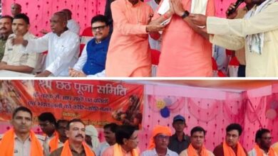 छठ पूजा कमेटी द्वारा समाजसेवी विजय कुमार झा को किया सम्मानित
