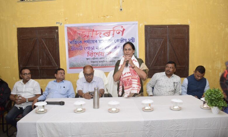 असम के विश्वनाथ जिले में केंद्रीय राज्य मंत्री शोभा करंदलाज की समीक्षा बैठक।