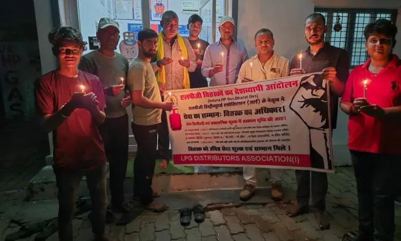 प्रयागराज में हाथों में कैंडल लेकर LPG वितरकों का शांतिपूर्ण प्रदर्शन