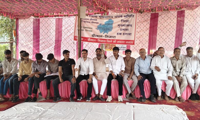 खैरथल : खैरथल-तिजारा जिले का नाम परिवर्तन करने एवं मुख्यालय को अन्यत्र ले जाने की आशंका के चलते जिला बचाओ संघर्ष समिति द्वारा दिए जा रहे धरने को आज बुधवार को 88 वें दिन भी जारी रहा!