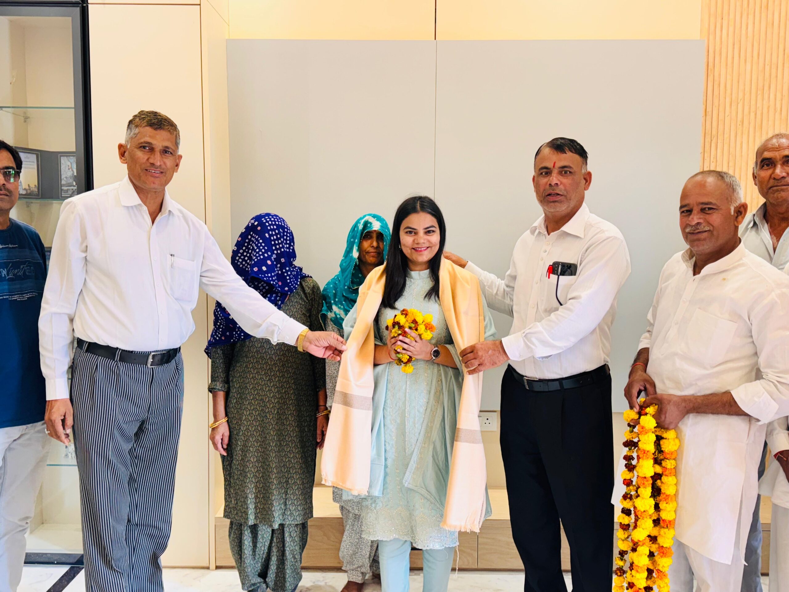 खैरथल-तिजारा : मुण्डावर के गांव दुनवास निवासी समाज सेवी राज सिंह चौधरी की पुत्री रितु चौधरी के आरएएस में चयनित होने पर ब्लॉक कांग्रेस कमेटी मुंडावर के अध्यक्ष अखिलेश कौशिक व पूर्व अपर लोक अभियोजक रामावतार चौधरी ने उनके निवास स्थान दूनवास पहुंच कर आरएएस रितु चौधरी का शाल उढ़ा कर एवं गुलदस्ता भेट कर स्वागत किया। इस अवसर पर राज सिंह चौधरी, रण सिंह चौधरी ,कमल सिंह, इंजीनियर अजय चौधरी सहित गांव के अनेक गण मान्य लोग मौजूद रहे।