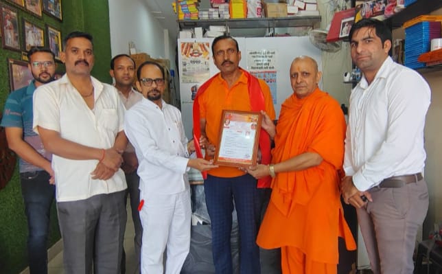 बागपत। विश्व हिंदू महासंघ के शिक्षक बुद्धिजीवी संत वृंद प्रकोष्ठ के राष्ट्रीय अध्यक्ष श्री श्री 1008 आचार्य कृष्ण विश्रुतपाणि जी महाराज तथा राष्ट्रीय महासचिव शिक्षाविद सोनवीर सिंह जी द्वारा वरिष्ठ पत्रकार सुरेंद्र मलानिया प्रजापति को संगठन का राष्ट्रीय मीडिया प्रभारी नियुक्त किया गया है। इस अवसर पर संस्थान की ओर से उन्हें सम्मान स्वरूप एक धार्मिक पटका और नियुक्ति पत्र प्रदान किया गया।