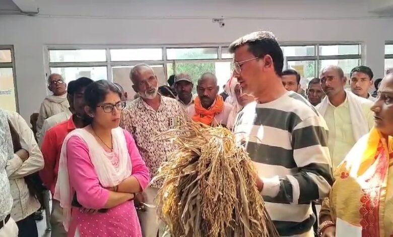 सिंगरौली। जिले में बेमौसम बारिश से फसलों को भारी नुकसान हुआ है। बुधवार को काम ग्राम पंचायत की महिला सरपंच सुमित्रा देवी अपने खेतों से सड़ी हुई धान की बालियां लेकर कलेक्टर कार्यालय पहुंचीं। उन्होंने अधिकारियों को फसल का हाल दिखाते हुए मुआवजे की मांग की। जिले में पिछले कुछ दिनों से लगातार हुई बारिश ने किसानों की मेहनत पर पानी फेर दिया है। खेतों में कटी हुई धान नमी के कारण सड़ गई है, जबकि खड़ी फसल में अंकुर फूट आए हैं। किसानों का कहना है कि अब थ्रेसर से धान निकालने पर वह भूसे में बदल जाएगा।