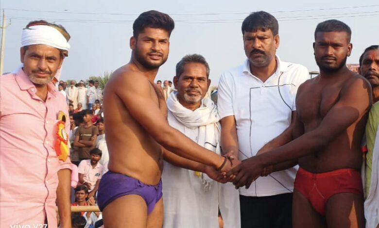 महागामा। कार्तिक पूर्णिमा के अवसर पर हनवारा में दो दिवसीय पारंपरिक कुश्ती प्रतियोगिता का भव्य आयोजन किया गया। उद्घाटन समारोह में कांग्रेस जिला अध्यक्ष याहया सिद्दीकी, पूर्व मुखिया मंजूर आलम, पूर्व प्रमुख यूनुस अली और अनिरुद्ध यादव ने संयुक्त रूप से फीता काटकर एवं पहलवानों से हाथ मिलाकर प्रतियोगिता की शुरुआत की।इस मौके पर बड़ी संख्या में खेल प्रेमी और ग्रामीण उपस्थित थे। पहले दिन विभिन्न वर्गों के पहलवानों ने अपनी ताकत और दांव-पेंच का शानदार प्रदर्शन किया, जिससे अखाड़े में मौजूद दर्शक झूम उठे। आयोजकों ने बताया कि प्रतियोगिता का फाइनल मुकाबला आज आयोजित होगा। जिसमें विजेता को प्रथम पुरस्कार 7 हजार 500 रुपये, द्वितीय को 4 हजार 500 रुपये और तृतीय को 3000 रुपये नकद देकर सम्मानित किया जाएगा। कार्यक्रम को सफल बनाने में कुश्ती कमिटी और अखाड़ा सदस्य अशफाक आलम, साइन आलम, तारिक अजीज, जहांगीर आलम, नवरत्न शर्मा, शफीक उर्फ बॉस सहित कई युवाओं का महत्वपूर्ण योगदान रहा। आयोजन का उद्देश्य पारंपरिक खेलों को बढ़ावा देना और युवाओं में खेल भावना को प्रोत्साहित करना बताया गया। हनवारा में हर साल कार्तिक मेला के अवसर पर होने वाली यह कुश्ती प्रतियोगिता अब स्थानीय पहचान बन चुकी है, जिसका ग्रामीण बेसब्री से इंतजार करते हैं।