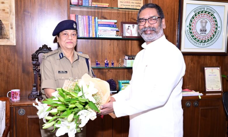 रांची। सीएम हेमन्त सोरेन से शुक्रवार को मुख्यमंत्री आवासीय कार्यालय में राज्य की नवनियुक्त प्रभारी पुलिस महानिदेशक एवं पुलिस महानिरीक्षक तदाशा मिश्रा ने मुलाकात की। प्रभारी पुलिस महानिदेशक का पदभार ग्रहण करने के उपरांत मुख्यमंत्री से उनकी यह शिष्टाचार भेंट थी।