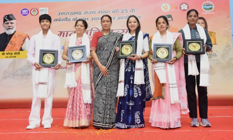 हल्द्वानी। राज्य स्थापना की रजत जयंती के अवसर पर गौलापार स्थित मानसखंड खेल परिसर में शनिवार को महिला सशक्तिकरण एवं बाल विकास विभाग की ओर से “मातृ शक्ति उत्सव:-अमृत काल की नारी शक्ति: जननी भी, जननेता भी” कार्यक्रम का आयोजन किया गया। कार्यक्रम की मुख्य अतिथि महिला सशक्तिकरण एवं बाल विकास मंत्री रेखा आर्या थीं।