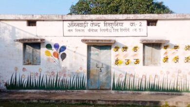 झाड़ियों में समाहित जोगियानी का आंगनवाड़ी भवन