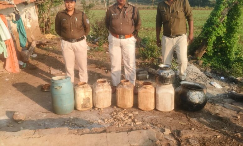 छिंदवाड़ा : पुलिस के संयुक्त दल की दबिश लगभग 1000 कि.ग्रा. महुआ लहान व 30 लीटर कच्ची शराब की गई l बरामद9 नवंबर2025/ कलेक्टर नारायन के निर्देशानुसार जिला आबकारी अधिकारी अजीत एक्का के मार्गदर्शन में गत दिवस वृत चौरई क्षेत्र में आबकारी विभाग एवं चांद पुलिस स्टाफ की टीम के द्वारा वृत के ग्राम थावडी कुहिया धगडिया पिण्डरई व टाप में दबिश की कार्यवाही की गई। इस कार्यवाही में अलग अलग स्थानों से अवैध शराब बनाने के लिए तैयार की गई लगभग 1000 किलोग्राम महुआ लहान और महुआ की कच्ची शराब उतारने वाली देशी चालू भट्ठी एवं 30 लीटर अवैध हाथ भट्टी कच्ची शराब बरामद की गई । चालू भट्ठी को मौके पर नष्ट किया गया तथा महुआ लाहान का सैंपल लेकर शेष महुआ लहान मौके पर नष्ट किया गया। इस कार्यवाही में मध्यप्रदेश आबकारी अधिनियम की धारा 34(1) (क), 34(1) (च) के तहत प्रकरण कायम किया गए। कार्यवाही में सहायक जिला आबकारी अधिकारी कुमारी भारती गौड़ एवं आबकारी आरक्षक भारती मरकाम उपस्थित थीं।