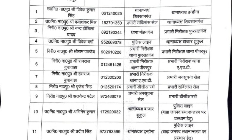 दो थाना प्रभारी गैर जनपद हुआ तबादला