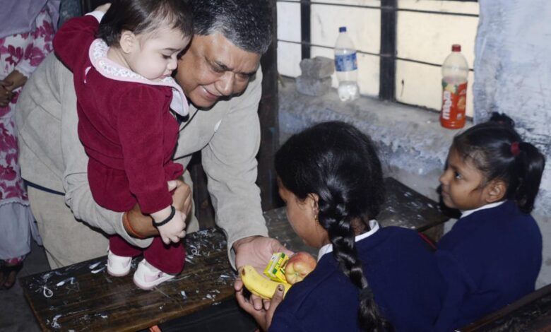 चेयरमैन विजय कपूर ने विद्यार्थियों में फल और फ्रूटी का वितरण किया