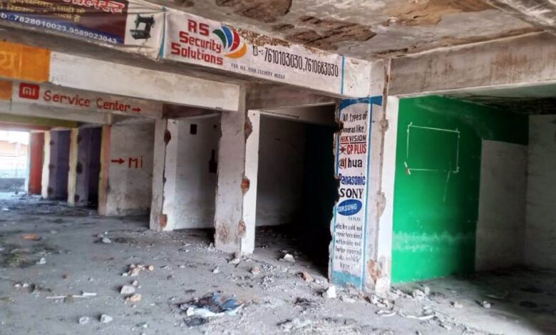 डेढ़ साल पूर्व जर्जर भवन को देख तत्कालीन आयुक्त ने गनियारी व्यावसायिक प्लाजा को दुकानदारों से कराया था खाली