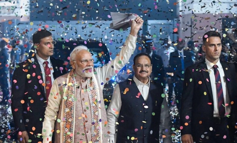 प्रधानमंत्री नरेंद्र मोदी ने शुक्रवार को नई दिल्ली में पार्टी कार्यकतार्ओं को संबोधित करते हुए कहा कि बिहार चुनाव 2025 में एनडीए की जीत पार्टी और जनता द्वारा एनडीए सरकार के प्रति समर्थन का परिणाम है। प्रधानमंत्री मोदी ने अपने भाषण की शुरूआत बिहार की जनता द्वारा एनडीए को दिए गए ऐतिहासिक जनादेश को स्वीकार करते हुए की और कहा, “बिहार के लोगों ने गर्दा उड़ा दिया।” महागठबंधन पर तंज कसते हुए उन्होंने राज्य को आश्वासन दिया कि कट्टा सरकार कभी वापस नहीं आएगी और राज्य भविष्य में अभूतपूर्व विकास देखेगा।