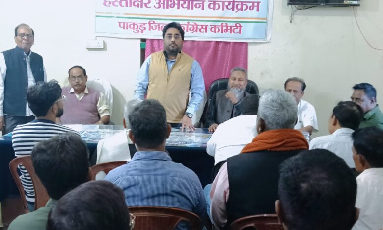 पाकुड़। बीते रविवार को झारखंड प्रदेश कांग्रेस महासचिव तनवीर आलम ने जिला कांग्रेस कार्यालय, पाकुड़ पहुंचे। जहां नगर एवं ग्रामीण क्षेत्रों से आए हुए आम जनों ने बिजली, पानी, चापाकल मरम्मती, पीसीसी रोड, डीप बोरिंग सहित विभिन्न समस्याओं से अवगत कराया। साथ ही तनवीर आलम ने संबंधित विभागों से यथाशीघ्र समाधान कराने का आश्वासन दिया। इसके अतिरिक्त उन्होंने कांग्रेस कार्यकर्ताओं के साथ बारी-बारी से भेंट-मुलाकात कर संगठनात्मक गतिविधियों, जनसमस्याओं एवं आगामी कार्यक्रमों पर गहन चर्चा की। हर कार्यकर्ता की बात ध्यानपूर्वक सुनते हुए समाधान के लिए उचित दिशा-निर्देश भी दिये। कार्यक्रम की अध्यक्षता जिला कांग्रेस अध्यक्ष श्रीकुमार सरकार ने की। जिला अध्यक्ष ने बताया कि आज की बैठक में अब तक लंबित जनसमस्याओं की समीक्षा की गई तथा आगामी कार्ययोजना को लेकर महत्वपूर्ण निर्णय लिए गये। इस दौरान प्रदेश सचिव सेमिनुल इस्लाम, प्रखंड अध्यक्ष मानसारुल हक, जिला प्रवक्ता मुख्तार हुसैन, जिला कोषाध्यक्ष असद हुसैन, प्रखंड उपाध्यक्ष मजीबुर रहमान, महिला जिला अध्यक्ष शहनाज बेगम, ओबीसी जिला अध्यक्ष आमिर हमजा, रामविलास महतो, मोनिता कुमारी,मंडल अध्यक्ष बुलबुल आलम, जमाल हाजी, गुलाम रसूल, असरफुल हक सहित कांग्रेस कार्यकर्ता मौजूद रहे।
