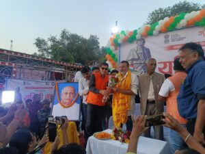 गोड्डा : सरदार वल्लभ भाई पटेल की 150वीं जयंती पर खेलकूद एवं युवा कार्य मंत्रालय, भारत सरकार के तत्वावधान में आज 19 नवंबर को गोड्डा में भव्य यूनिटी मार्च का आयोजन किया गया। राष्ट्रीय एकता, अखंडता और स्वदेशी अभियान के संदेश के साथ निकले इस मार्च में सैकड़ों युवाओं और विभिन्न संगठनों के कार्यकर्ता शामिल हुए।मार्च की शुरुआत शाम 4 बजे गांधी मैदान से हुई, जो कारगिल चौक और गोड़ी चौक होते हुए पुनः गांधी मैदान पहुँचा। मार्च के नेतृत्व में मुख्य अतिथि गोड्डा सांसद डॉ. निशिकांत दुबे स्वयं कदम से कदम मिलाकर शामिल रहे। गोड्डा जिला भाजपा अध्यक्ष संजय मिश्रा ने बताया कि इस यूनिटी मार्च में लगभग 500 युवा शामिल हुए। मार्च के समापन पर गांधी मैदान परिसर में देशभक्ति गीतों और सांस्कृतिक कार्यक्रमों का आयोजन किया गया। कार्यक्रम को सफल बनाने में भाजपा कार्यकर्ताओं के साथ कई सामाजिक संगठनों ने भी सक्रिय भूमिका निभाई।