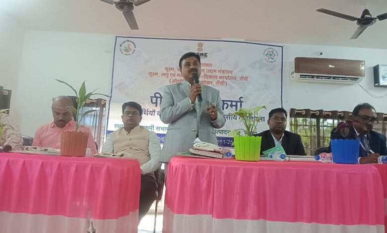 बोकारो : भारत सरकार, एमएसएमई मंत्रालय के एमएसएमई-विकास कार्यालय, रांची द्वारा बोकारो जिले के भेंडरा स्थित लौहकर्मी प्रशिक्षण सह उत्पादन केंद्र के सभागार में पीएम विश्वकर्मा योजना के लाभार्थियों के लिए एक दिवसीय जागरूकता कार्यशाला आयोजित किया गया। कार्यक्रम का मुख्य उद्देश्य लाभार्थियों को योजना से मिलने वाले लाभ , पात्रता एवं आवेदन की प्रकिया इत्यादि के बारे में वृहद रुप से जानकारी देना एवं जागरुक करना हैं। कार्यक्रम का शुभारंभ मुख्य अतिथि नावाडीह बीडीओ प्रशांत कुमार हेंब्रम,आईईडीएस सहायक निदेशक गौरव,जिला उद्योग केंद्र बोकारो के महाप्रबंधक राजेन्द्र प्रसाद, एल डी एम बोकारो आबिद हुसैन,इंडियन पोस्ट पेमेंट मैनेजर प्रीतम कुमार ,भेंडरा मुखिया नरेश कुमार विश्वकर्मा एवं अन्य गणमान्य अतिथियों के द्वारा दीप प्रज्वलित करके किया गया। कृष्णा राव यंग प्रोफेशनल द्वारा उद्घाटन सत्र में मुख्य अतिथि एवं सभी गणमान्य अतिथियों को सोल भेंट कर स्वागत किया गया। इस दौरान मुख्य अतिथि नावाडीह बीडीओ प्रशांत कुमार हेंब्रम ने कार्यक्रम के उद्घाटन में अपने अभिभाषण में कहा कि भारत सरकार की ओर से प्रधानमंत्री विश्वकर्मा योजना, विश्वकर्मा जयंती दिनांक 17 सितम्बर, 2023 को प्रधानमंत्री जी के द्वारा डिजिटली लौंच (लागू) की गई थी। उन्होंने सभा में उपस्थित 18 पारंपरिक विद्याओं में कार्य करने वाले कारीगरों और शिल्पकारों से इस योजना का लाभ लेने हेतु ज्यादा से ज्यादा संख्या में ई-कॉमर्स के माध्यम से सामान बेचने की प्रक्रिया सीखने का आह्वान किया।