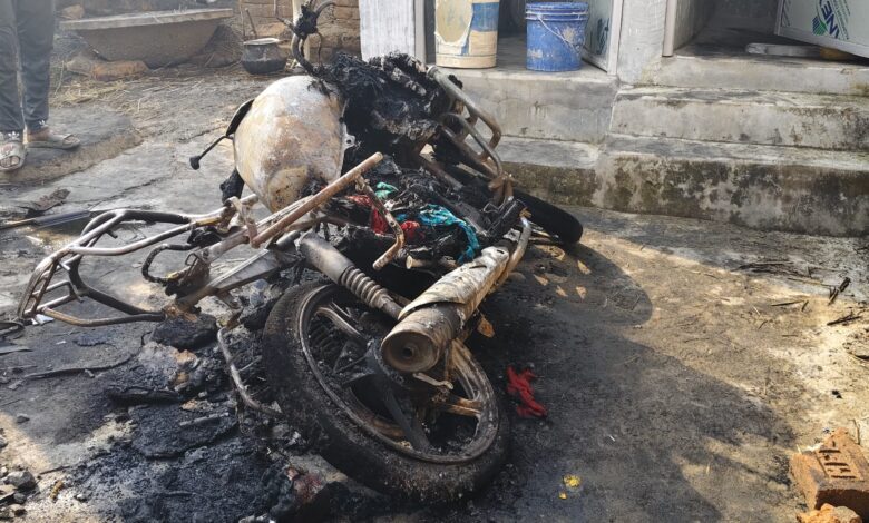 जानकारी के अनुसार, पंकज कुमार भगत (पिता स्वर्गीय रामजी भगत), खैरबनी निवासी, के घर में देर रात किसी अज्ञात व्यक्ति ने घुसकर हीरो स्प्लेंडर मोटरसाइकिल (नंबर JH 17W 6128) में आग लगा दी। आग लगने की हल्ला होने पर पड़ोसी पंकज भगत की नींद पूरी। घर से बाहर निकलकर देखा कि मोटरसाइकिल धू-धू कर जल रही थी। परिवार और ग्रामीणों की मदद से किसी तरह आग पर काबू पाया गया। तब तक मोटरसाइकिल पूरी तरह जल चुका था। ग्रामीणों का कहना है कि उसी रात कुछ अन्य जगहों पर भी आग लगाने का प्रयास किया गया, लेकिन सफल नहीं हो पाए। पंकज भगत ने बताया कि पिछले वर्ष भी पुआल के टाल में आग लगाने की घटना हुई थी और इस वर्ष फिर ठंड के मौसम में घर में घुसकर मोटरसाइकिल में आग लगा दी गई। लगातार हो रही इन घटनाओं से परिवार सहम गया है। घटना की सूचना मिलते ही पथरगामा थाना प्रभारी शिवदयाल सिंह ने बताया कि मामले की जांच शुरू कर दी गई है। जल्द ही मामले का उद्भेदन कर दोषियों को गिरफ्तार किया जाएगा।