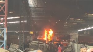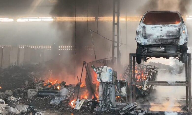 पुराने वाहन की स्क्रैप फैक्ट्री में धमाके से लगी भीषण आग से करोड़ों का नुकसान…