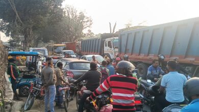 बड़े वाहन के प्रवेश के बाद गोड्डा कालेज से कृषि कालेज ओवर ब्रिज तक लगा स्फूर्त जाम का झाम
