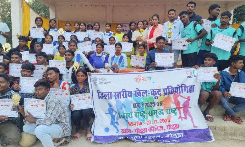 गोड्डा। गोड्डा कॉलेज के मैदान में युवा कार्यक्रम एवं खेल मंत्रालय, भारत सरकार के तत्वावधान में मेरा युवा भारत द्वारा जिला स्तरीय फुटबॉल एवं अन्य खेल प्रतियोगिता का सफल आयोजन किया गया। कार्यक्रम में मुख्य अतिथि के रूप में मोनालिसा कुमारी एवं विशिष्ट अतिथि नीलकंठ राय उपस्थित रहे।