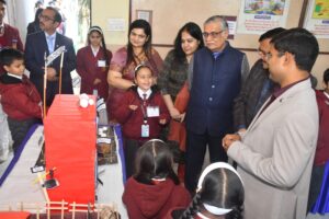 मुख्य अतिथि बी0डी0ए0 के उपाध्यक्ष डॉ0 मनिकंडन ए0 (आई0ए0एस0) ने फीता खोलकर मां सरस्वती के चित्र के सम्मुख दीप प्रज्ज्वलित कर शंखनाद की ध्वनि के बीच माँ सरस्वती एवं विघ्न विनाशक गणेश की प्रतिमाओं पर माल्यार्पण कर किया। इस अवसर पर विद्यालय के विद्यार्थियों ने संस्कृत में मंगलाचरण गान करते हुए ईश्वर से प्रदर्शनी के निर्विघ्न पूर्ण होने की कामना की तथा प्राथमिक एवं उच्च प्राथमिक स्तर के विद्यार्थियों ने साइबर अपराध, डिजि़टल अरेस्ट पर आधारित अनेकानेक सांस्कृतिक कार्यक्रमों को मंच पर प्रस्तुत किया जिन्हें देखकर आगुंतक अतिथिगण करतल ध्वनि करने को विवश हो उठे। मुख्य अतिथि डॉ0 मनिकंडन ए0, आई0ए0एस0 (उपाध्यक्ष बी0डी0ए0), ब्रजभूषण लाल चैरिटिबल ट्रस्ट के अध्यक्ष  सर्वेश कुमार अग्रवाल, प्रबन्धक  राघव कृष्ण अग्रवाल एवं अन्य विशिष्ट अतिथियों का स्वागत करते हुए विद्यालय की प्रधानाचार्या डॉ0 अल्पना जोशी ने कहा कि हमारा ध्येय भारत सरकार के विजन एवं प्रधानमंत्री नरेन्द्र मोदी की दूरदृष्टि के साथ ताल-मेल करते हुए विकसित भारत, विज्ञान के साथ, और विज्ञान से समृद्वि में निहित है भारत की उन्नति को ध्यान में रखकर प्रत्येक क्षेत्र में आत्मनिर्भर बनकर 2047 तक विकसित भारत के सपने को साकार रूप में देखने का है। इसी को हमने अपने मॉडलों में प्रदर्शित करने का प्रयास किया है। इसके पश्चात मुख्य अतिथि डॉ0 मनिकंडन ए0 एवं प्रबन्धक राघव कृष्ण अग्रवाल  ने प्रदर्शनी सभी के लिए खुलने की घोषणा की। प्रधानाचार्या डॉ0 अल्पना जोशी, उपप्रधानाचार्य आर0के0 शर्मा ने मुख्य अतिथि डॉ0 मनिकंडन ए0 (आई0ए0एस0) ट्रस्ट के अध्यक्ष सर्वेश अग्रवाल, प्रबन्धक राघव कृष्ण अग्रवाल एवं अन्य विशिष्ट अतिथियों को प्रदर्शनी का भ्रमण कराया। मुख्य अतिथि ने प्रत्येक मॉडल को गहनता से देखकर विद्यार्थियों की मुक्त कंठ से भूरि-भूरि प्रशंसा की और सम्बंधित मॉडलो के निर्माण की प्रक्रिया और कार्यप्रणाली के बारे में प्रश्न पूंछे। मुख्य अतिथि ने विज्ञान, गणित एवं सामाजिक विज्ञान के मॉडलों को देखकर कहा कि विज्ञान की शक्ति में ही भारत की प्रगति निहित है। मुख्य अतिथि ने विज्ञान प्रदर्शनी के आकर्षण ‘आपरेशन सिन्दूर‘ की विशेष रूप से सराहना की और कहा कि विज्ञान की शक्ति ने दिखाया कि भारत ने युद्व तकनीकि में कितनी प्रगति की है। विकसित भारत प्रदर्शनी में सोलर ग्रीन हाउस, पैन्टा वार्स, स्मार्ट विलेजिस एण्ड क्मवाइंगि टैक्नोलॉजी एण्ड टेडिश, ऑटोमैटिक पाल्यूशन कन्ट्रोल एण्ड चालान सिस्टिम, पीजो इलेक्ट्रो इजेक्ट, बुल्क कार्ट टू बुलेट ट्रेन, इण्डिया इन स्पेस टैक्नोलॉजी, भारत की स्थापत्य कला, शार्टेस्ट पाथ, फ्लूइड फ्लो विजुआलाईजर, पीजा मॉडल, बैक्सीन उत्पादन में आत