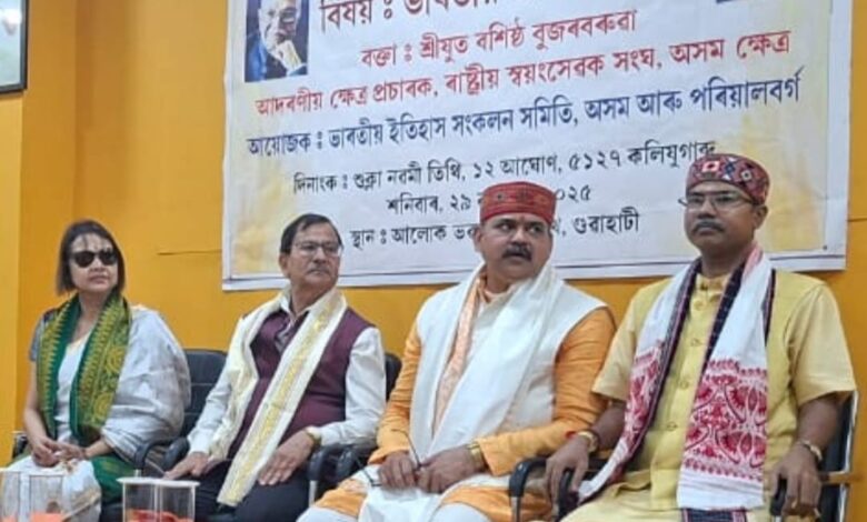 असम : भारतीय इतिहास संकलन समिति, असम के तत्वावधान में शनिवार को असम के गुवाहाटी स्थित आलोक भवन के मधुकर लिमये सभागृह में प्रख्यात इतिहासकार डॉ. भारत चन्द्र कलिता एवं लीला कलिता स्मारक पाँचवाँ वार्षिक व्याख्यान आयोजित किया गया। इस वर्ष के व्याख्यान का विषय था— “भारतीय ज्ञान परंपरा”। दीप प्रज्वलन, पुष्पांजलि और डॉ. कंकना गोस्वामी द्वारा गणेश वंदना तथा अखिल भारतीय इतिहास संकलन योजना के राष्ट्रीय सह-सचिव हेमंत धिंग मजूमदार के स्वागत भाषण के साथ कार्यक्रम का शुभारंभ हुआ। मुख्य वक्ता के रूप में राष्ट्रीय स्वयंसेवक संघ के असम क्षेत्र प्रचारक वशिष्ठ बुजरबरुआ ने एक सारगर्भित व्याख्यान प्रस्तुत किया। अपने संबोधन में वशिष्ठ बुजरबरुआ ने भारतीय ज्ञान परंपरा पर प्रकाश डालते हुए कहा कि भारतीय दर्शन के अनुसार यह संपूर्ण विश्व एक परिवार है। इसी कारण भारतीय लोग केवल अपने लिए ही नहीं, बल्कि सम्पूर्ण जगत के कल्याण की कामना करते हैं। उन्होंने कहा कि मत और उपासना पद्धति भिन्न हो सकती है, परंतु भारतीय दर्शन सभी को साथ मिलकर जीवन यापन करने की शिक्षा देता है। उन्होंने आगे कहा कि भारतीय वेद विज्ञान-विरोधी नहीं हैं; वेद के प्रत्येक श्लोक में वैज्ञानिक सूत्र निहित हैं। भारतीय कालगणना पद्धति अत्यंत वैज्ञानिक है, जो समय की सटीक गणना करती है और आज का आधुनिक विज्ञान भी उस स्तर तक नहीं पहुँच सका है। उन्होंने यह भी उल्लेख किया कि विदेशी आक्रमणों से पहले भारत आर्थिक दृष्टि से विश्वगुरु था तथा शिक्षा के क्षेत्र में भी अत्यंत उन्नत था। इसी कारण से विश्व के अनेक देशों के छात्र गुरुकुलों एवं भारतीय विश्वविद्यालयों में शिक्षा प्राप्त करने आते थे। भारतीय संस्कृति लूट या अत्याचार का नहीं, बल्कि ज्ञान और लोककल्याण का संदेश देती है।कार्यक्रम की अध्यक्षता भारतीय इतिहास संकलन समिति, असम के अध्यक्ष डॉ. गजेन्द्र अधिकारी ने की। अपने अध्यक्षीय भाषण में उन्होंने राष्ट्रीय रक्षा अकादमी (NDA) में लाचित बरफुकन पुरस्कार आरंभ किए जाने के लिए डॉ. भारत चन्द्र कलिता के प्रयासों का भी उल्लेख किया।अखिल भारतीय इतिहास संकलन समिति के राष्ट्रीय महासचिव हेमंत धिं मजूमदार ने अपने संबोधन में भारतीय इतिहास संकलन समिति, असम के दो कार्यकालों तक अध्यक्ष रहने के दौरान डॉ. कलिता के योगदान को स्मरण किया और कहा कि समिति को वर्तमान स्वरूप देने में डॉ. कलिता का योगदान अविस्मरणीय है। असम के विभिन्न क्षेत्रों से आए लगभग एक सौ से अधिक विशिष्ट व्यक्तियों की उपस्थिति में आयोजित इस कार्यक्रम का संयोजन समिति के पदाधिकारी प्रांजल दास और हेमा शर्मा ने संयुक्त रूप से किया। कार्यक्रम का समापन डॉ. भारत चन्द्र कलिता की ज्येष्ठ पुत्री ए