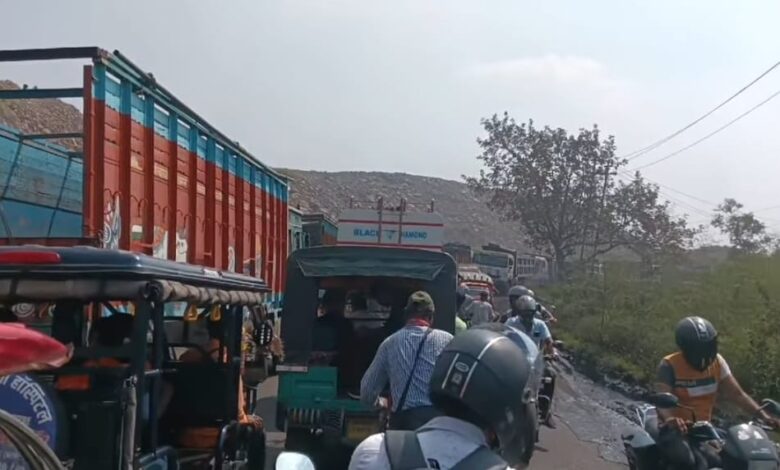 The Rajganj-Mahuda NH 32 main road is facing traffic jams these days, causing commuters to suffer for hours.