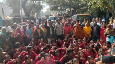 कस्तूरबा गांधी आवासीय विद्यालय के छात्राओं ने सड़क जाम कर किया प्रदर्शन।
