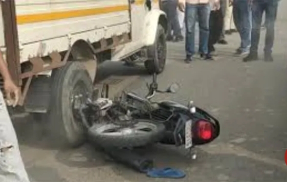 बाइक पर दो युवक सवार थे जो पिकअप वाहन के नीचे दब गए