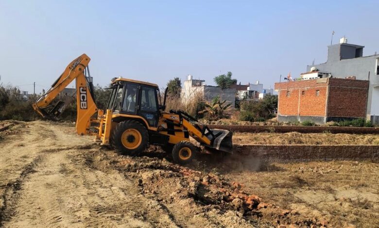ग्राम-सीकरी खुर्द मोदीनगर क्षेत्र में अवैध कालोनियों पर चला प्राधिकरण का बुलडोज़र