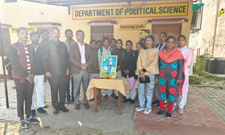 राजनीति शास्त्र विभाग के तत्वाधान में आज बाबा साहब बी0आर0 अंबेडकर जी का महापरिनिर्वाण दिवस भावभीनी श्रद्धांजलि देकर मनाया गया ।