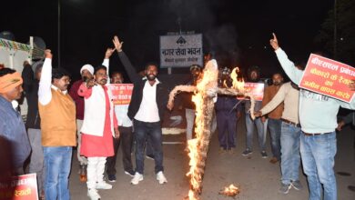 विस्थापितों ने किया सांसद ढुलू महतो का पुतला दहन।