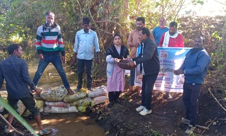 छिंदवाड़ा l उपस्थित जनों को जल संरक्षण की शपथ भी दिलाई गई l कलेक्टर हरेंद्र नारायन के निर्देशन में जिले के विकासखंड चौरई के ग्राम मंदारिया में जिला समन्वयक अखिलेश जैन के मार्गदर्शन में जल संचय अभियान के अंतर्गत बोरी बंधान कार्यक्रम नवांकुर संस्था आदर्श जिज्ञासा समिति तितरी एवं मेंटर्स अकील खान के सहयोग से किया गया l जिसमें विकासखंड समन्वयक अफ़्शा खान द्वारा सभी को जल संचय अभियान की विस्तृत जानकारी दी गई। इसके बाद समिति के सदस्यों एवं नवांकुर संस्था के साथ बोरीबंधान किया गया l एवं सभी को जल संचय अभियान की शपथ दिलाई गई तथा सभी को इस अभियान के लिए अपने ग्राम में जनजागृति लाने एवं पानी व्यर्थ न बहाने पर जानकारी देकर इस पर चर्चा की गई। इस कार्यक्रम में ओम प्रकाश रघुवंशी, रामदयाल यादव, एन,कुमार धुर्वे, शकमलेश कहार एवं समिति के सदस्य उपस्थित थे।