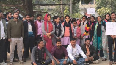 गोड्डा कॉलेज परिसर में छात्रवृत्ति की मांग को लेकर छात्रों का धरना प्रदर्शन