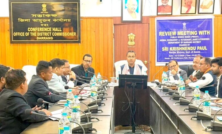असम के दरंग जिले के सरकारी योजनाओं की प्रगति पर मंत्री कृष्णेंदु पाल की उपस्थिति में समीक्षा बैठक।