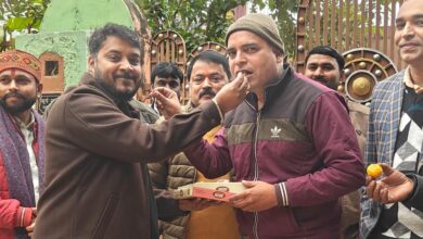 प्रशांतवीर के पिता को मिठाई खिलाकर जताई खुशी