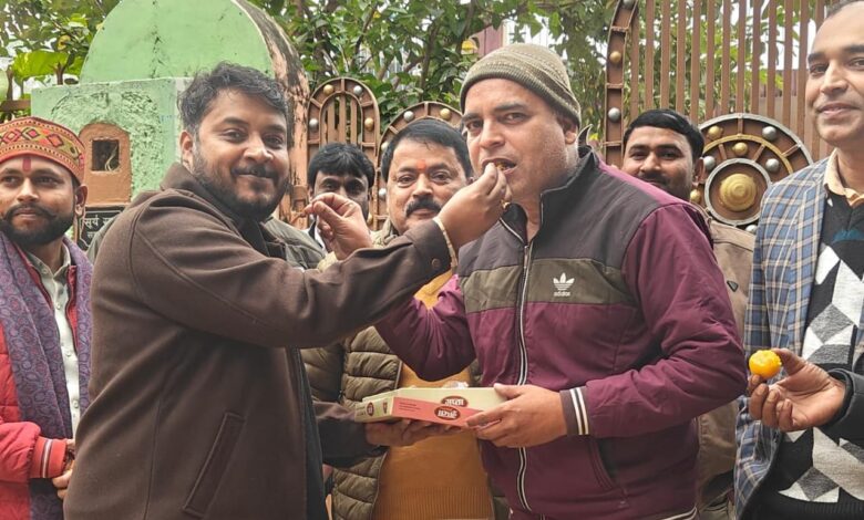 प्रशांतवीर के पिता को मिठाई खिलाकर जताई खुशी