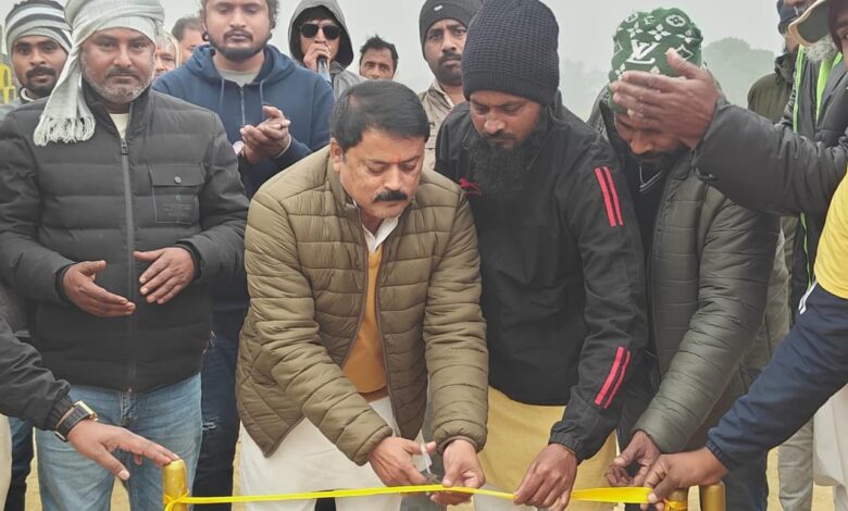 संग्रामपुर अमेठी। चंडेरिया क्रिकेट कप के नौवे दिन बृहस्पतिवार को संग्रामपुर प्रधान संघ अध्यक्ष व धौरहरा ग्राम प्रधान संजय सिंह उर्फ मुन्ना ने प्रतियोगिता के पहले सुपर फाइनल मैच का फीता काटकर उद्घाटन किया। इस दौरान उन्होंने दोनों टीमों के खिलाड़ियों से परिचय प्राप्त किया। वही क्रिकेट प्रतियोगिता की आयोजन की सराहना करते हुए उन्होंने खिलाड़ियों का उत्साहवर्धन करते हुए कहा कि जिस प्रकार क्षेत्र के गूंजीपुर निवासी प्रशांतवीर ग्रामीणांचलों किक्रेट टूर्नामेंट प्रतियोगिताओं से आईपीएल तक का सफर तय कर 14.20 की नीलामी के बाद आज अपने मां-बाप और जिले का नाम रोशन किए हैं यह इन्हीं क्रिकेट टूर्नामेंट प्रतियोगिताओं की बदौलत संभव हुआ है। उन्होंने आयोजक समिति का उत्साहवर्धन करते हुए प्रतियोगिता के सफल आयोजन के लिए 21000 रूपये का आर्थिक सहयोग प्रदान किया। इस दौरान शैलेंद्र सिंह डंपी, दीपक सिंह, रिंकू सिंह बाबा, अंकित सिंह, चंडेरिया प्रधान तुफैल खान के साथ आदि लोग उपस्थित रहे।