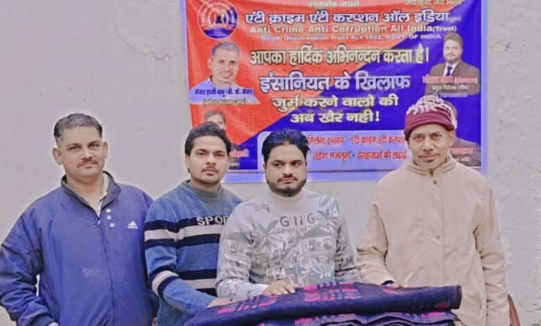 एंटी क्राइम एंटी करप्शन ऑल इंडिया ट्रस्ट ने जरूरतमंदों को कंबल व बच्चों को गर्म कपड़े वितरित किए