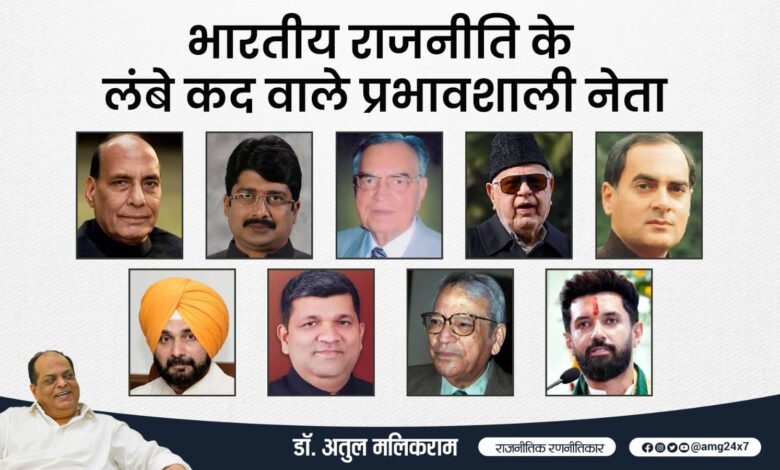 भारतीय लोकतंत्र ने ऐसे अनेक कद्दावर नेताओं को देखा है, जिनकी शारीरिक ऊँचाई उनके वैचारिक और राजनीतिक कद का प्रतीक बन गई। ये नेता केवल अपनी लंबाई के लिए नहीं, बल्कि अपने साहस, संकल्प और दूरदर्शी सोच के लिए भी पहचाने जाते रहे हैं। इस परंपरा में पूर्व प्रधानमंत्री राजीव गांधी से लेकर युवा नेता चिराग पासवान तक कई नाम शामिल हैं।