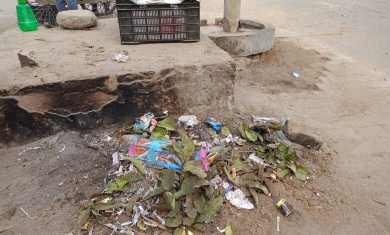 ढकिया चौराहे पर दुकानों के आगे लगी गंदगी भरी कूडो की ढेरी से दुकानदार व ग्राहक परेशान