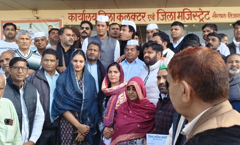 खैरथल कलक्ट्रेट पर प्रदर्शन, जिला प्रशासन को सौंपा ज्ञापन