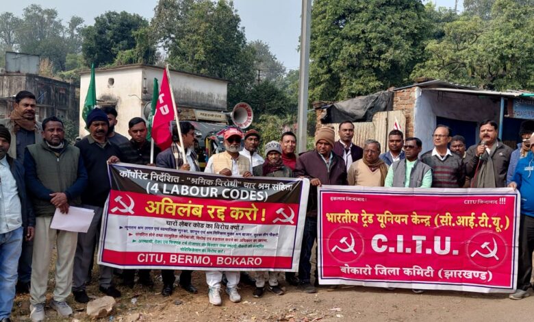 बोकारो: सेंटर ऑफ़ इंडियन ट्रेड यूनियन (सीटू) की बोकारो जिला कमेटी के नेतृत्व में सहायक श्रमायुक्त कार्यालय, बोकारो थर्मल में जोरदार प्रदर्शन किया गया। प्रदर्शन के पूर्व एक सभा का आयोजन किया गया जिसकी अध्यक्षता जिला अध्यक्ष भागीरथ शर्मा एवं संचालन सीटू के बोकारो जिला संयुक्त महासचिव विजय कुमार भोई ने किया। सभा को संबोधित करते हुए सीटू के राज्य उपाध्यक्ष रामचंद्र ठाकुर ने कहा सीटू के नेतृत्व में 16-23 दिसंबर तक पूरे भारत में मोदी सरकार के द्वारा लागू किए गए चार लेबर कोड के खिलाफ एक जन अभियान चल रहा है। आज का यह प्रदर्शन इस अखिल भारतीय अभियान का हिस्सा है। उन्होंने कहा पिछले दिनों देश के मजदूरों के अधिकारों की रक्षा के लिए श्रम कानून बना हुआ था जिसे बदलकर भारत की मोदी सरकार लेबर कोड ला रही है जो मजदूरों के हित में नहीं है। लेबर कोड को रद्द करने की मांग को लेकर सीटू का यह देशव्यापी अभियान चल रहा है। उन्होंने कहा अगर भारत की मोदी सरकार लेबर कोड को वापस नहीं लेती है तब फरवरी महीने में चार लेबर कोड के खिलाफ अखिल भारतीय हड़ताल देश के मजदूर करेंग। सीटू के राज्य सचिव जयनारायण महतो ने कहा श्रम कानून को बनाने के लिए मजदूर और मजदूर नेताओं ने बलिदान दिया है संघर्ष किया है तब देश में मजदूरों की रक्षा के लिए श्रम कानून बनाया गया था, जिसे आज की मोदी सरकार बदल दे रही है। हम लोग झारखंड में इसे किसी कीमत पर लागू नहीं होने देंगे। उन्होंने कहा केरल की तरह झारखंड में भी इसे रोक कर रखा जाना चाहिए। सीटू के जिला महासचिव प्रदीप कुमार विश्वास ने कहा बोकारो जिला एक औद्योगिक इकाई है जहां लेबर कोड के लागू होने से बोकारो जिले में मजदूरों के बीच हाहाकार मच जाएगा, सरकार नहीं मानी तब आगामी फरवरी महीने में अखिल भारतीय हड़ताल होगा। इस जिले के अंदर जिले के सभी वर्ग के मजदूर लेबर कोड के खिलाफ हड़ताल पर उतरेंगे। निर्माण व असंगठित मजदूरों के नेता राकेश कुमार ने कहा जिस समय देश में श्रम कानून बचा हुआ है उस समय मजदूरों को ना तो न्यूजम मजदूरी की गारंटी है, ना तो समय पर वेतन की गारंटी है, न हीं उन्हें मिलने वाले लाभ की गारंटी है। जब श्रम कानून नहीं रहेगा और चार लेबर कोड लागू हो जाएगा उस समय मजदूरों का क्या हाल होगा। सभा को सीटू नेता जयनथ मेहता, श्याम बिहारी सिंह दिनकर, गोवर्धन रविदास, पंकज महतो, मनोज पासवान, शंकर प्रजापति, निजाम अंसारी, अख्तर खान, गणेशा राम, समेत कई लोगों ने संबोधित किया।