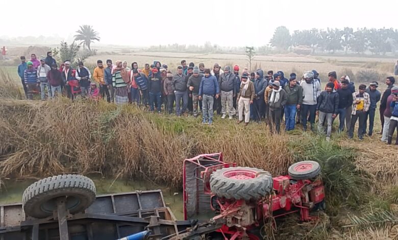 धान लदी ट्रैक्टर पलटने से चालक व सहचालक की मौत, गांव में पसरा मातम