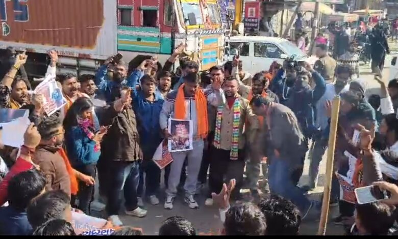 बजरंग दल कार्यकर्ताओं ने बांग्लादेश में हिंसा के विरोध में किया प्रदर्शन