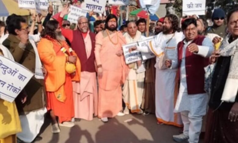 मथुरा। वृंदावन/ बांग्लादेश में हिंदुओं पर लगातार हो रहे अत्याचारों के विरोध में वृंदावन में जगह जगह प्रदर्शन किया गया। चिंतामणि कुंज के सामने श्रीकृष्ण जन्मभूमि मुक्ति न्यास के आह्वान पर साधु-संतों और सामाजिक प्रतिनिधियों ने बांग्लादेश में हिंदुओं के साथ हो रहे जुल्म की कड़ी निंदा की। श्रीकृष्ण जन्मभूमि मुक्ति न्यास के अध्यक्ष महेंद्र प्रताप सिंह एडवोकेट ने कहा बांग्लादेश अपनी हरकतों से बाज आए। चिंतामणि कुंज के पीठाधीश्वर डॉक्टर आदित्यानंद महाराज ने कहा कि बांग्लादेश में हिंदू अल्पसंख्यक हैं और उन्हें योजनाबद्ध तरीके से डराया-धमकाया जा रहा है। महामंडलेश्वर श्रीकृष्णानंद महाराज ने कहा कि बांग्लादेश में कट्टरपंथी ताकतें हिंदुओं को निशाना बना रही हैं। पद्मश्री लक्ष्मी गौतम ने कहा कि जब समाज की महिलाएं एकजुट होती हैं तब परिवर्तन निश्चित होता है। इस दौरान चिंतामणि कुंज के पीठाधीश्वर डॉक्टर आदित्यानंद महाराज, पद्मश्री लक्ष्मी गौतम, साध्वी शकुंतला, हनुमान टेकरी के महंत दशरथदास महाराज, महामंडलेश्वर श्रीकृष्णानंद महाराज, संत श्यामानंद महाराज, श्यामसुंदर ब्रजवासी, इस्कॉन के बाबा बलरामदास महाराज, देवानंद महाराज, रामदास महाराज, कथावाचक अतुलकृष्ण शास्त्री, छवि वार्ष्णेय, राधा मोहन और डॉक्टर राम आदि मौजूद रहे।