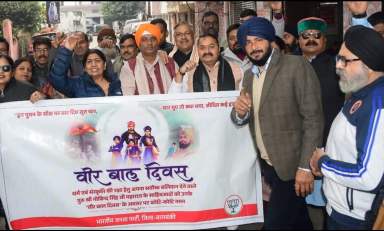 बाराबंकी जनपद में वीर बाल दिवस से पूर्व बुधवार को श्री राम जानकी मंदिर में साहिब श्री गुरु गोविंद सिंह के चार साहिबजादों को श्रद्धांजलि दी गई। इस अवसर पर उनके चित्र पर श्रद्धा सुमन अर्पित कर उनके बलिदान को याद किया गया।