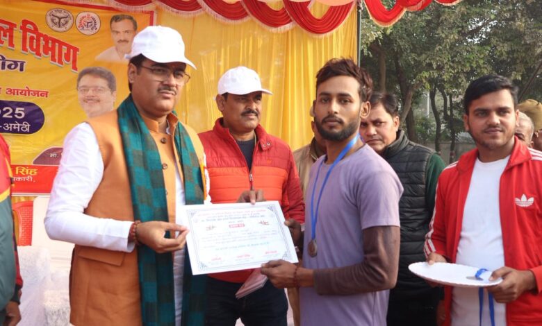 अमेठी। क्षेत्रीय युवा कल्याण एवं प्रान्तीय रक्षक दल विभाग अमेठी के तत्वावधान में उ0प्र0 ग्रामीण खेल लीग के अन्तर्गत विधायक खेल स्पर्धा विधानसभा क्षेत्र गौरीगंज में शुक्रवार और शनिवार को पी0एम0श्री जवाहर नवोदय विद्यालय के खेल मैदान गौरीगंज में दो दिवसीय खेल प्रतियोगिता का आयोजन किया गया है। उक्त कार्यक्रम का उद्घाटन विधायक गौरीगंज राकेश प्रताप सिंह द्वारा फीता काटकर दीपदान व गुब्बारा उड़ाकर किया गया एवं क्षेत्रीय युवा कल्याण अधिकारी गौरीगंज रागिनी के द्वारा मुख्य अतिथि का बुके देकर, बैच लगाकर व कैप पहनाकर स्वागत किया गया तथा ए0डी0ओ0 सांख्यिकी गौरीगंज कौशलेन्द्र चन्देल के द्वारा अंगवस्त्र व स्मृति चिन्ह भेंट किया गया। उन्होंने बताया कि खेल प्रतियोगिता सबजूनियर, जूनियर व सीनियर वर्ग में एथलेटिक्स, कबड्डी, कुश्ती महिला व पुरुष वर्ग में आयोजित की गयी, जिसके अन्तर्गत जूनियर 100 मी0 दौड़ पुरूष वर्ग में रविकान्त यादव, अनुज, विवेक वर्मा एवं बालिका वर्ग में आराधना तिवारी, आराधना मिश्रा, मंजीत तथा सबजूनियर 100 मी0 दौड़ बालक वर्ग में सुखदीप सिंह, अंश पाठक, स्वास्तिक मिश्र ने क्रमशः प्रथम, द्वितीय व तृतीय स्थान प्राप्त किया। इसी क्रम में सबजूनियर कबड्डी बालक वर्ग में जयपुरिया गौरीगंज उपविजेता व जामों विजेता तथा बालिका वर्ग में जयपुरिया प्रथम व गुरूकुल की टीम ने द्वितीय स्थान प्राप्त किया। उन्होंने बताया कि इस दौरान मौके पर क्षेत्रीय युवा कल्याण अधिकारी बहादुरपुर निधि श्रीवास्तव, जिला व्यायाम प्रशिक्षक संदीप सिंह, ब्लॉक व्यायाम प्रशिक्षक बहादुरपुर दिलीप सिंह, ब्लॉक व्यायाम प्रशिक्षक गौरीगंज सत्येन्द्र सिंह, प्रमोद कुमार मौर्या, वसीम अहमद, सत्य नारायण चौरसिया, ओंकार नाथ सिंह, प्रदीप मौर्या, जिला स्काउट मास्टर अमेठी सुरेश प्रताप सिंह, राघवेन्द्र प्रताप सिंह, प्रेमचन्द्र यादव सिंह, कीर्ति पाल सिंह, विनोद कुमार सिंह व शिव प्रताप पान्डे, प्रभात, बाबूलाल सहित अन्य लोग उपस्थित रहे।