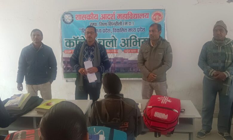 सिंगरौली । मध्यप्रदेश शासन उच्च शिक्षा विभाग द्वारा शैक्षणिक सत्र 2026-27 में विद्यार्थियों को महाविद्यालयीन शिक्षा से जोड़ने के उद्देश्य से 5 दिसंबर से 5 जनवरी तक “कॉलेज चलो अभियान” संचालित किया जा रहा है। इसी क्रम में शासकीय आदर्श महाविद्यालय रम्पा सिंगरौली द्वारा एक अभिनव पहल करते हुए विद्यालय स्तर पर विद्यार्थियों को उच्च शिक्षा एवं नई शिक्षा नीति 2020 से संबंधित जानकारी प्रदान की गई ।महाविद्यालय के प्राचार्य डॉ. विश्वनाथ सिंह कुशराम और प्रशासनिक अधिकारी डॉ एम. एन तिवारी एवं नोडल अधिकारी डॉ. गिरीश कुमार चतुर्वेदी के मार्गदर्शन में गठित टीम के द्वारा आज शासकीय उच्चतर माध्यमिक विद्यालय कर्सूआ राजा, जिला सिंगरौली का भ्रमण कर छात्र-छात्राओं को महाविद्यालयीन शिक्षा, प्रवेश प्रक्रिया एवं शैक्षणिक गतिविधियों की जानकारी प्रदान की गई ।
